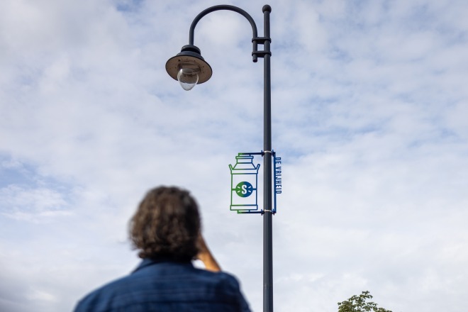 Wat doet die melkbus aan de lantaarnpaal?