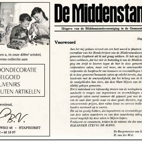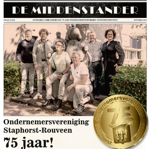 Ondernemersvereniging Staphorst-Rouveen heeft vanwege haar 75-jarig jubileum een speciale editie van ‘De Middenstander’ uitgebracht. De jubileumkrant wordt huis-aan-huis verspreidt in de gemeente Staphorst en is via onderstaande link online te bekijken.