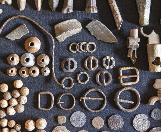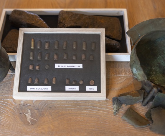 Bij binnenkomst ligt de keukentafel van Gerrit vol met vondsten die hij uit de grond heeft gehaald. “Het zijn allemaal vondsten die gedaan zijn in de gemeente Staphorst.”, begint Gerrit. “Praktisch alles komt uit de periode tussen 1300 en 1600, zeg maar de late middeleeuwen. Ik heb onder meer munten gevonden uit Spanje en Engeland, bijlen, hamerkoppen, musketkogels, kaarsstandaarden, eetgerei, visnetverzwaringen en ook een aantal complete bronzen potten en een pan. Van sommige dingen weet ik ook niet precies wat het is, alleen dat ze oud zijn. Ik probeer alles in de originele staat te behouden. Daarnaast heb ik hulzen uit de Tweede Wereldoorlog gevonden. Met behulp van experts bij mijn vorige werkgever zijn we tot de ontdekking gekomen dat deze hulzen een link hebben met het verhaal van de Franse parachutisten die hier in april 1945 zijn geland bij operatie Amherst.”