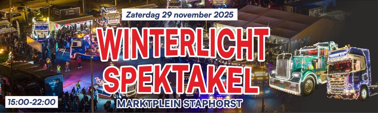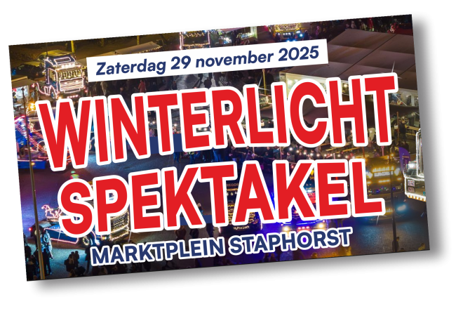 Na een succesvolle eerste editie in 2023 komt het Winterlicht Spektakel op zaterdag 29 november 2025 terug naar het Marktplein in Staphorst. Tussen 15:00 en 22:00 uur beleef je een sfeervol evenement vol licht, muziek en gezelligheid. De toegang is gratis!