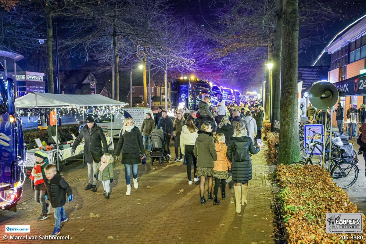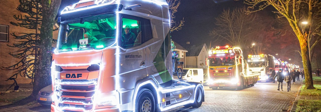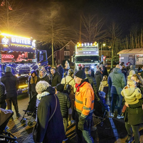 De stoet verlichte trucks vertrekt rond 16:30 uur bij Redder Transport in Staphorst. Ze rijden via Rouveen en Punthorst richting het centrum van Staphorst. Rond 18:00 uur arriveren ze op het marktplein, waar ze letterlijk tussen de kramen door zullen inparkeren. Je kunt de trucks van dichtbij bewonderen — en vaak ook even binnenkijken! De volledige route vind je verderop op deze pagina.