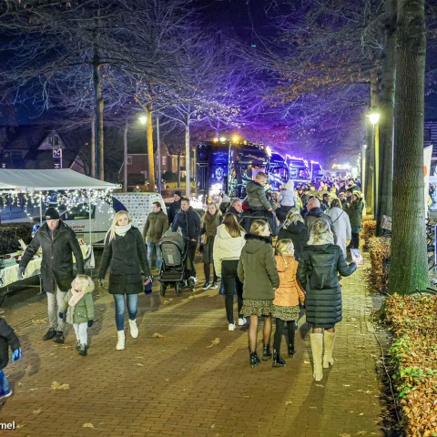 Op het plein vind je een gezellige wintermarkt met marktkramen, sfeerverlichting en een grote tent waar je kunt genieten van warme dranken en winterse hapjes. Hoogtepunt van de avond? De indrukwekkende verlichte trucks die het plein in vuur en vlam zetten — natuurlijk figuurlijk!